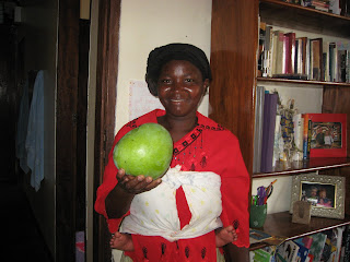 After coffee, and handling the request at the door, the next order of business for the morning was to get the girls from David Family started baking. We have had some complaints that our bread is too crumbly so I baked 8 different loaves of bread yesterday trying to come up with a new recipe. Together we tasted and decided on what recipe we wanted and then went to get the supplies we needed, but the canteen was closed. So, as I raided my cupboards for the supplies I also dealt out rakes for the boys in the family who had yard work to do. On the way to get the girls set up in their kitchen my neighbor asked me how to make jello. After instructing her we set off again to the kitchen, but were met by another one of the girls who informed us they were out of propane gas. So, we all turned around to help carry a gas can, but found it empty. At that point the decision was made to move all our operations to my house for baking. As we were arranging things, the manager of our guest house came over as I had invited her to taste test the new recipes. We enjoyed about 20-30 minutes of visiting over different breads while the girls patiently waited to begin fulfilling their orders for today.