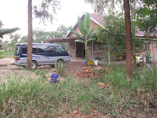 And, though we are in the new house, there is not a new school banda, yet. For now, Uncle Josh, our current missionary teacher is using our old banda to teach. This is a picture of reading time with all the first grade and one older independent study child. In the background on the banda porch you can see our makeshift carpentry workshop from where our carpenter is still building our kitchen.